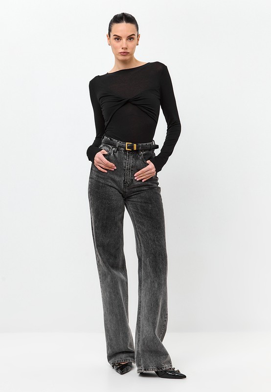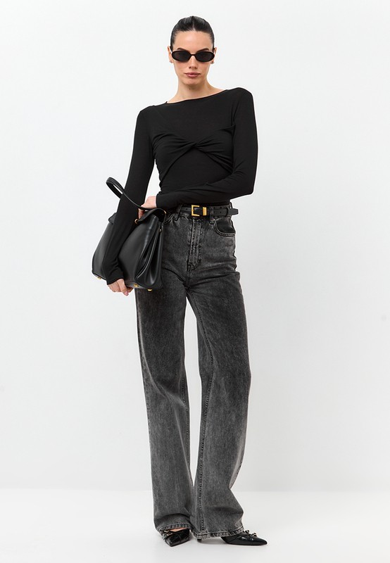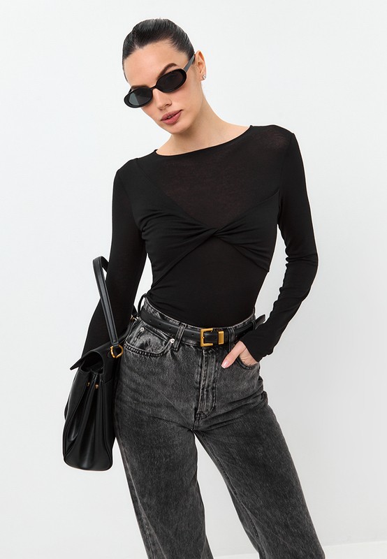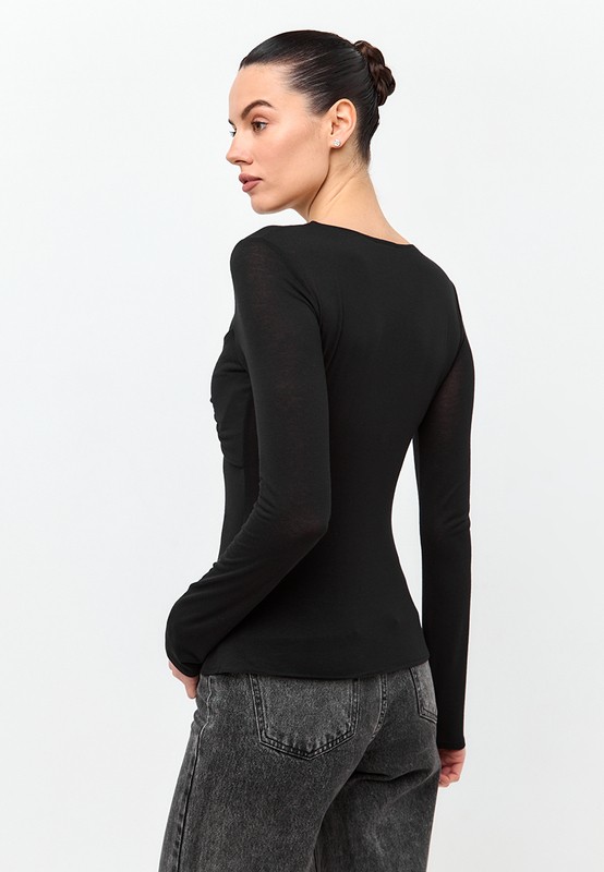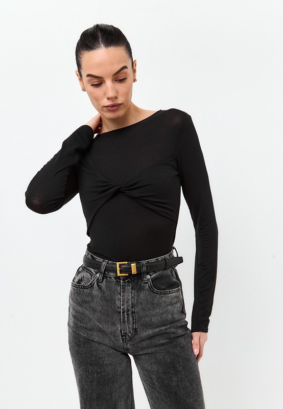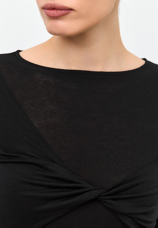 Лонгслив с драпировкой в виде перекрута из полупрозрачного натурального трикотажа. Стилизуйте его с брюками и юбками из базовой коллекции Suara или любыми джинсами из вашего гардероба.