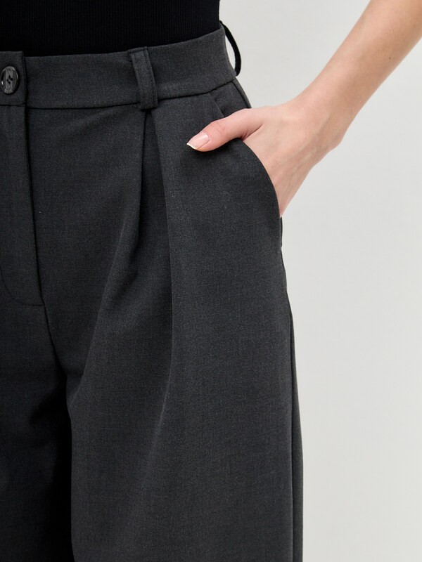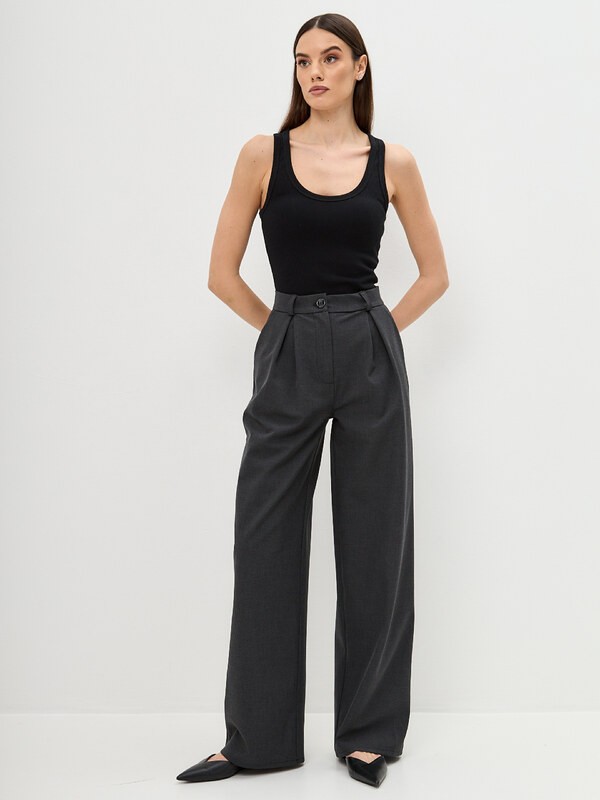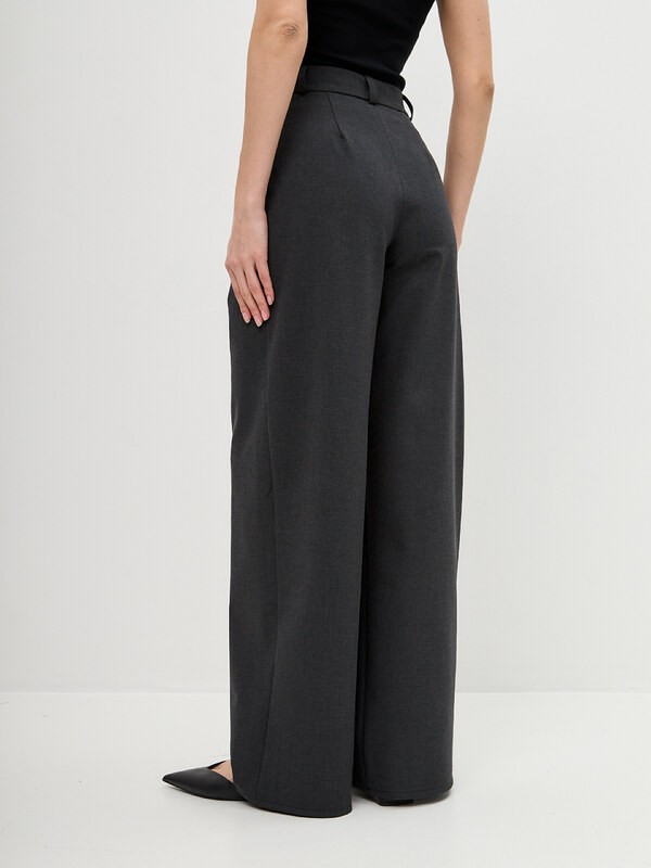 Брюки палаццо свободного кроя, с двумя складками на поясе и дополнительными шлейками для ремня. Брюки создают мягкий силуэт и изящно подчеркивают талию. Модель выполнена из качественного поливискозного материала, обладающего высокими износостойкими свойствами, брюки практически не мнутся, при носки не образовываются жесткие заломы, характерные другим костюмным тканям. После неоднократных стирок внешний вид изделия не ухудшается. Сочетайте брюки с жилетами из нашей базовой коллекции или носите с рубашками в более повседневных образах.