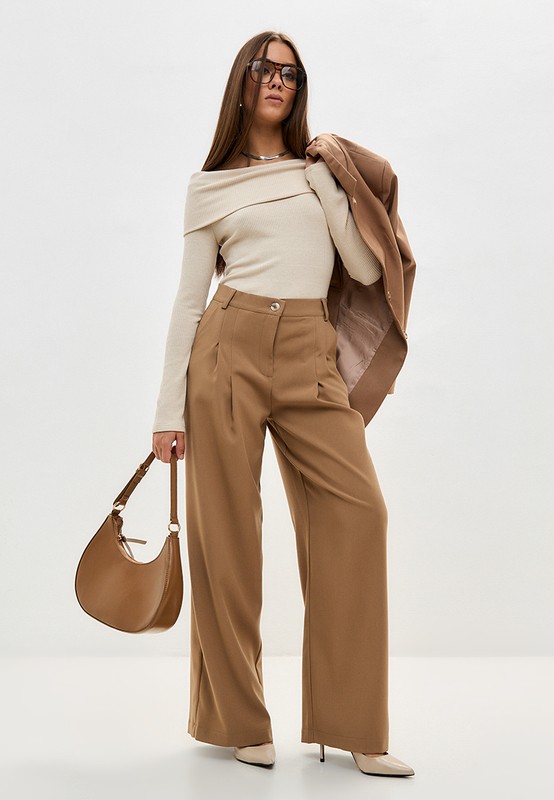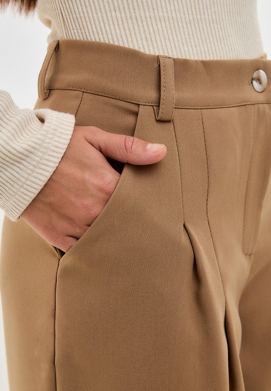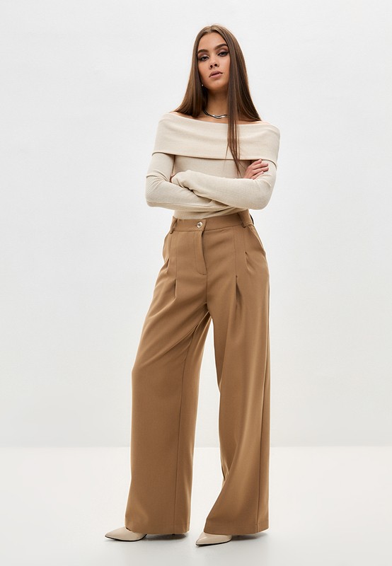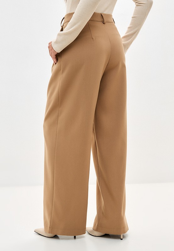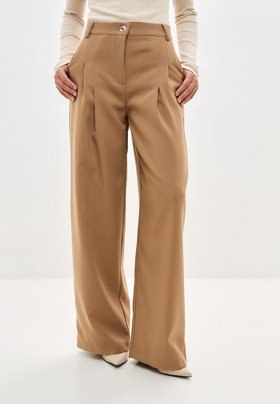 Широкие брюки с застроченными складками и дополнительными шлейками для ремня. Посадка чуть ниже талии. Модель выполнена из качественного поливискозного материала, обладающего высокими износостойкими свойствами, брюки практически не мнутся, при носки не образовываются жесткие заломы, характерные другим костюмным тканям. После неоднократных стирок внешний вид изделия не ухудшается. Брюки легко впишутся в гардероб и останутся в нем на несколько сезонов.