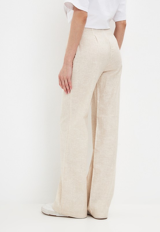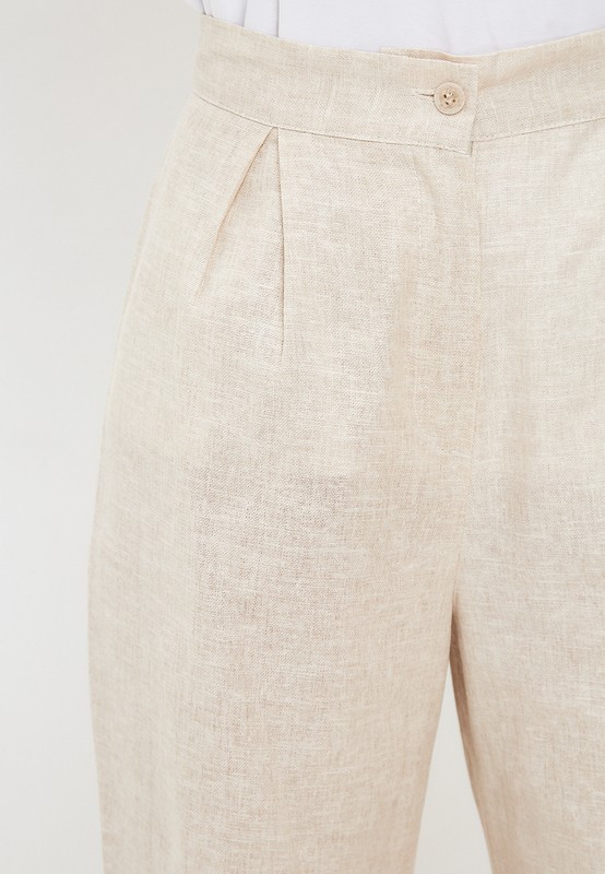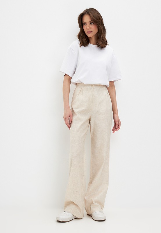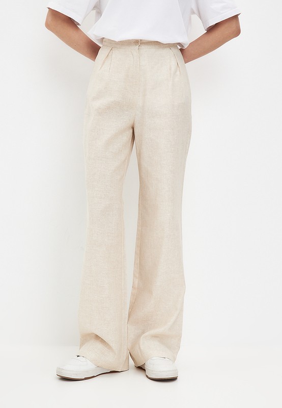 Прямые брюки с защипами - идеальная модель для сезона весна-лето. Посадка брюк на талии. Свободный, мягкий силуэт -универсальное решение для повседневных образов или вечерних выходов. Модель выполнена из качественного натурального льна с добавлением вискозы.