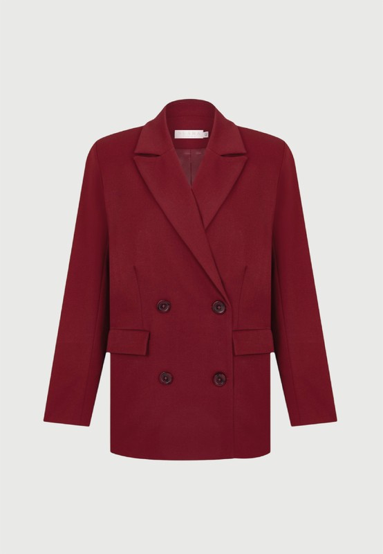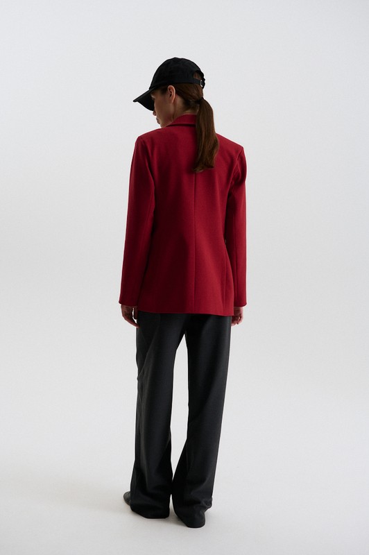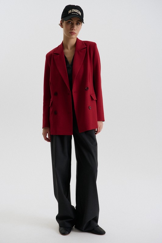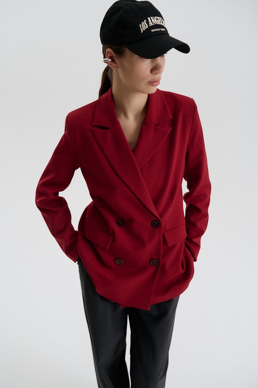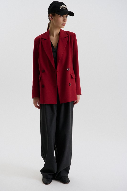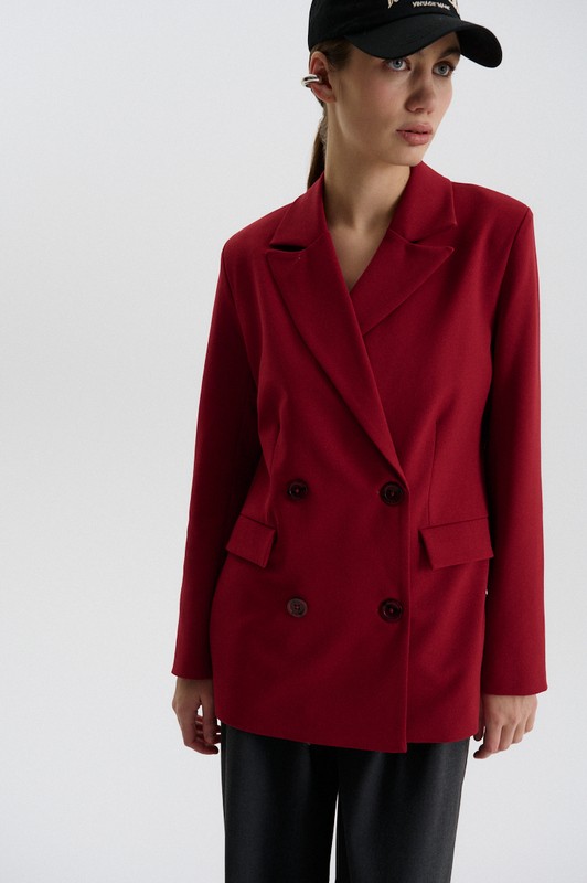 Двубортный пиджак из поливискозной костюмной ткани. Добавление искусственных волокон придает материалу долговечность и мягкость. Модель для повседневных образов - прямой крой, с классическими лацканами и карманами с клапанами.