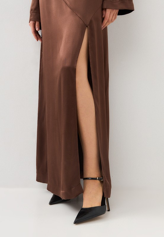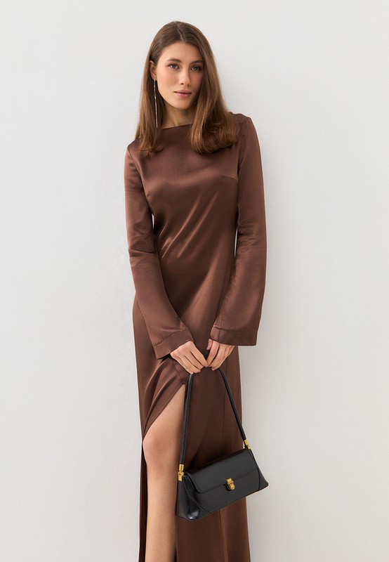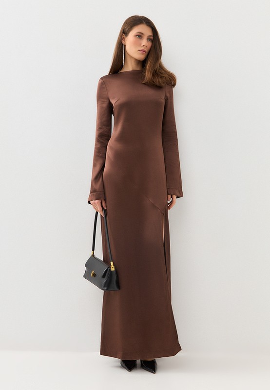 Роскошное платье в пол - для эффектных образов и особых случаев. Высокий разрез - элегантно раскрывается при движении, выгодно подчеркивая и визуально вытягивая силуэт. Модель платья выполнена из вискозы премиального качества с шелковым блеском.