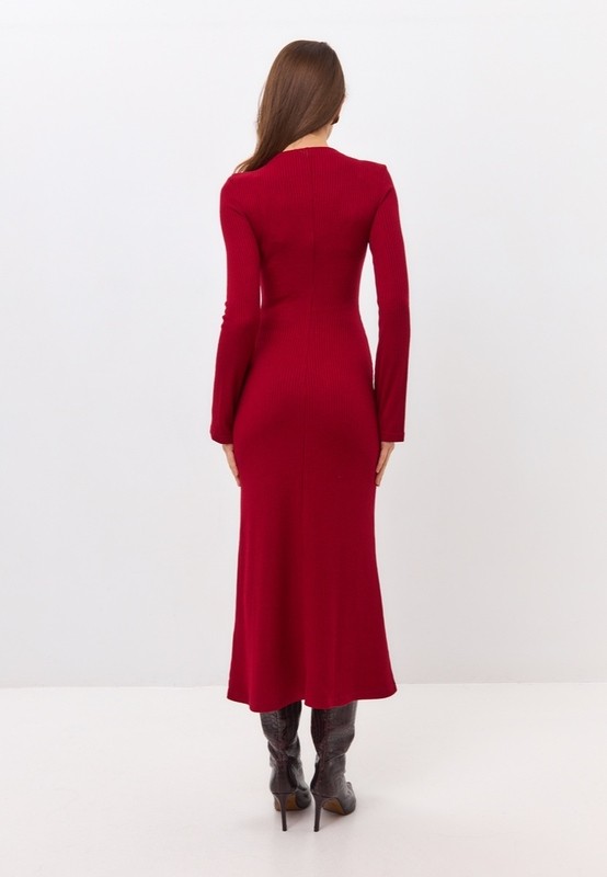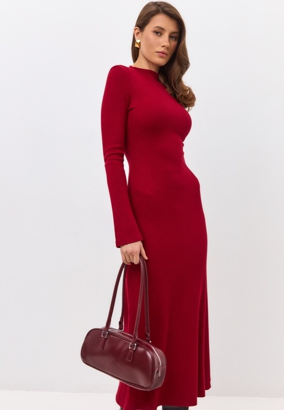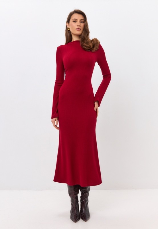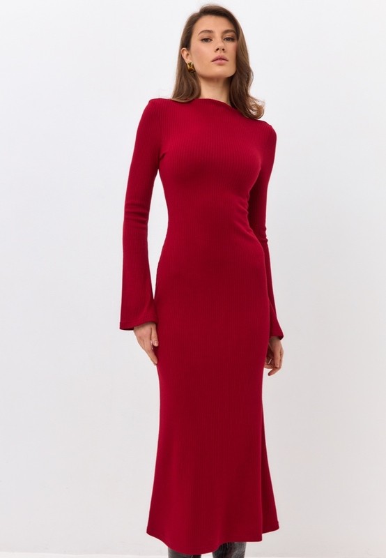 Элегантное платье из мягкого трикотажа в рубчик. Плавно облегающий силуэт и расклешенные к низу рукава играют в этой модели главную роль. Модель выгодно подчеркивает женственность фигуры. Подходит не только для вечера, но будет уместно и в дневных классических образах.