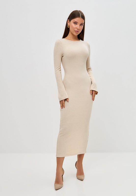 Платье из мягкого, поливискозного трикотажа - легко впишется в любой гардероб. Облегающий силуэт, классическая длина чуть ниже колена, и длинные, слегка расклешающиеся к низу рукава, создают элегантный и спокойный образ, где нет ничего лишнего.
