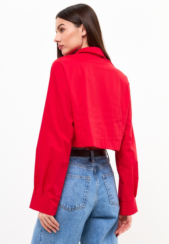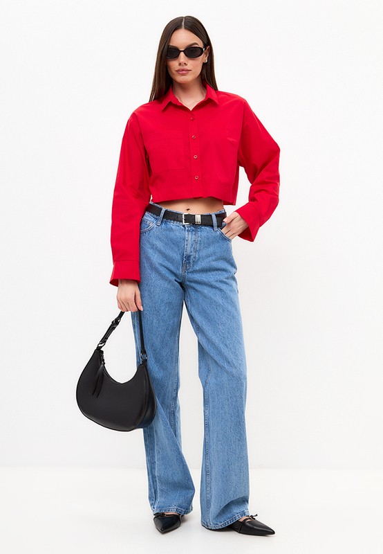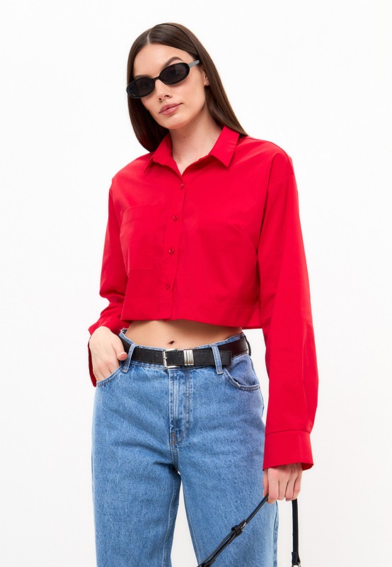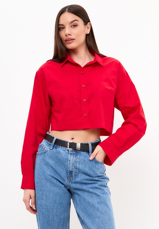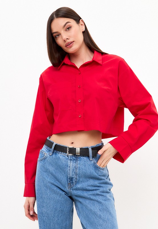 Укороченная рубашка oversize с отложным воротником. Эта рубашка универсальна: она впишется и в расслабленный casual, и в классический офисный образ. Так же ее можно носить как второй слой поверх кроп-топа.