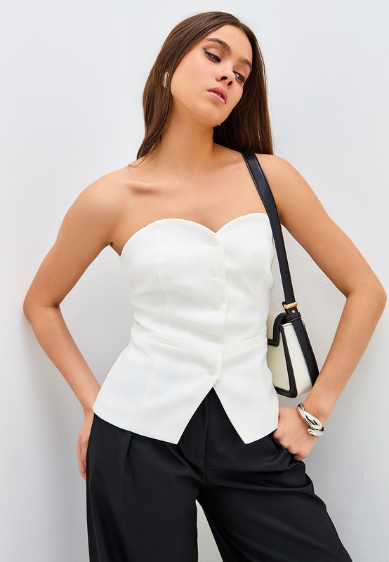 Корсет идеально подходит для вечерних выходов как самостоятельная единица, а в повседневных образах топ-корсет удачно сочетается с джинсами или брюками из базовой коллекции SUARA femme. Для более смелых стилизаций используйте корсет в многослойных образах поверх рубашек или футболок.