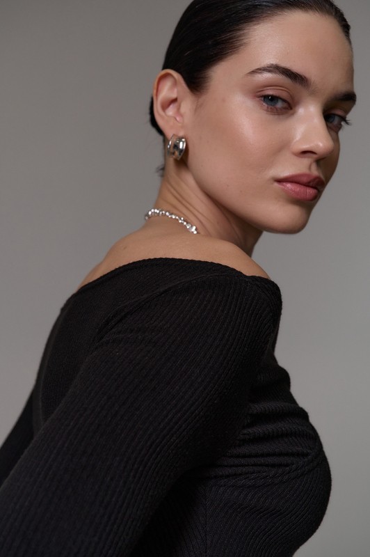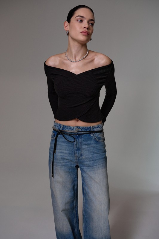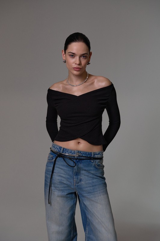 Водолазка с драпировкой "на запах" из мягкого трикотажа с акцентными открытыми плечами. Эта модель - идеальное решение как в вечернем, так и в повседневном образе. Сочетайте с жакетами, пальто и брюками.